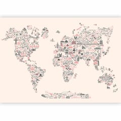Fototapeta - Mapa z ikon - rysunkowe przedstawienie świata w pastelowych kolorach rozmiar 400x280, wykończenie Standard
