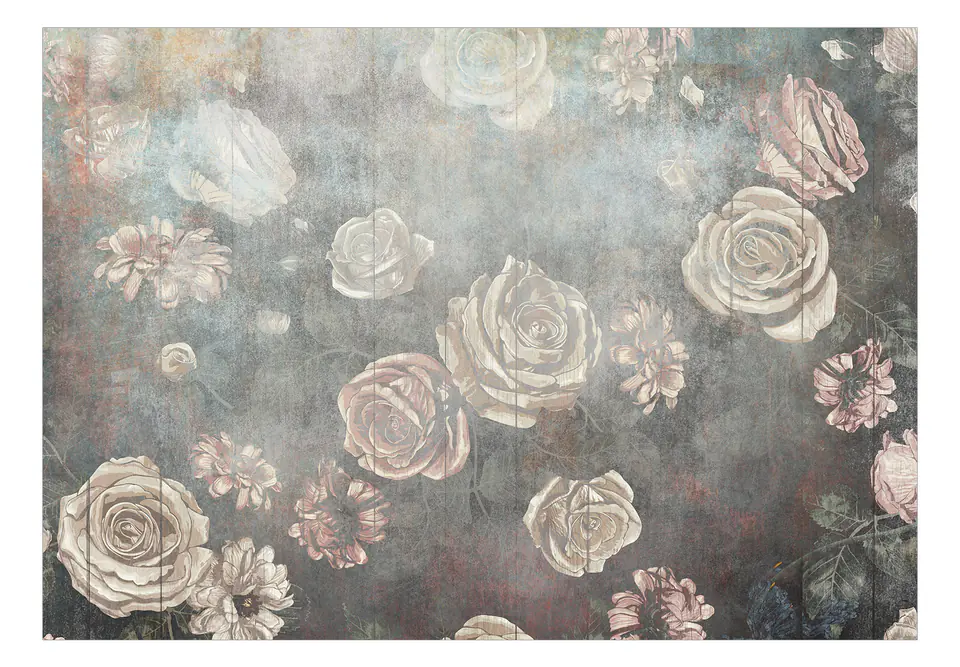 Fototapeta - Mglista natura - stonowane kwiaty róży na tle w odcieniach szarości rozmiar 400x280, wykończenie Premium