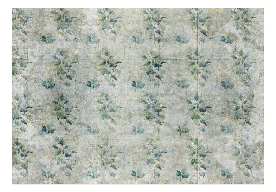 Fototapeta - Miętowe odcienie - zielone bukiety z liści na tle w retro desenie rozmiar 150x105, wykończenie Premium