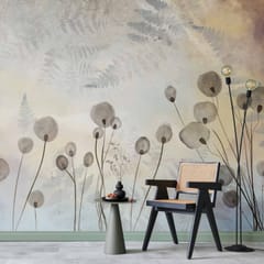 Fototapeta - Minimalistyczna łąka - roślinny motyw w jasnych odcieniach z odbiciami rozmiar 441x315, wykończenie Samoprzylepna