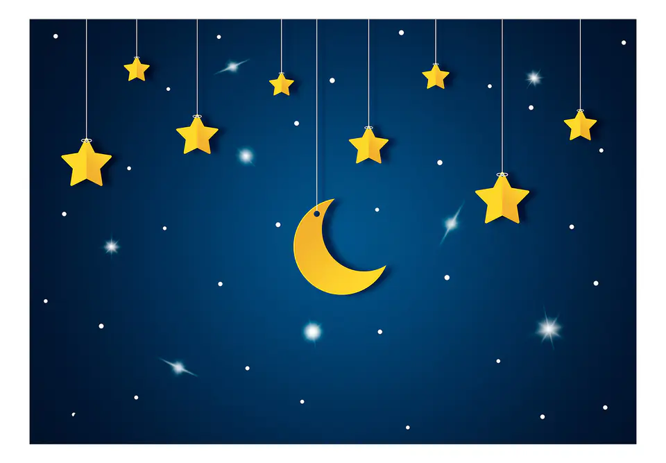 Fototapeta - Nieboskłon - pejzaż nieba nocą z gwiazdami i księżycem dla dzieci rozmiar 200x140, wykończenie Premium