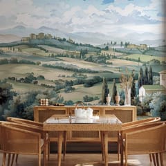 Fototapeta - Pejzaż z zielonymi polami i drzewami toskański słoneczny widok rozmiar 100x70, wykończenie Wodoodporna