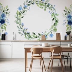 Fototapeta - Romantyczny wieniec - motyw roślinny z niebieskimi kwiatami i liśćmi rozmiar 250x175, wykończenie Wodoodporna