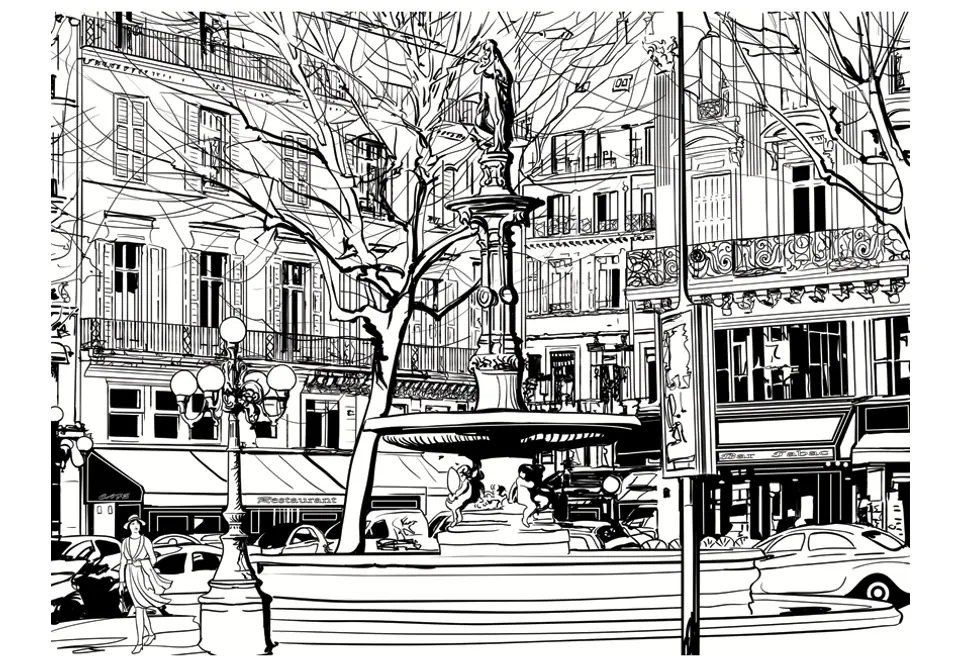 Fototapeta - Sketch of parisian fountain rozmiar 200x154, wykończenie Premium