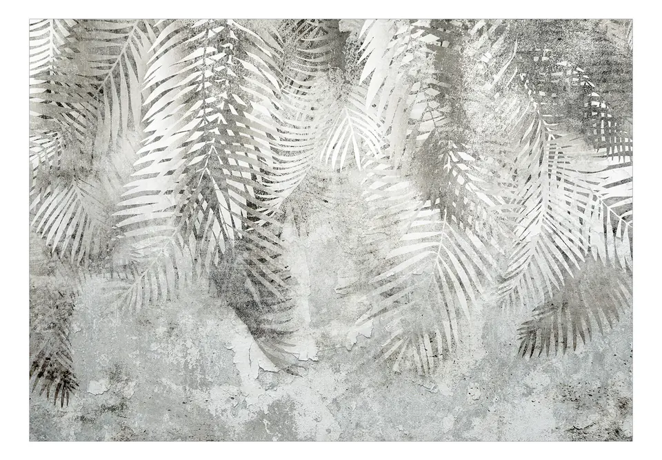 Fototapeta - Światło i cień - szaro-biała kompozycja z motywem roślinnym i deseniem rozmiar 100x70, wykończenie Premium