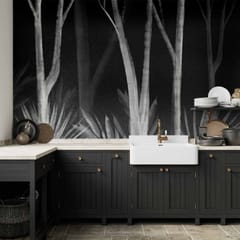 Fototapeta - Szum lasu nocą - minimalistyczny pejzaż białych drzew na czarnym tle rozmiar 300x210, wykończenie Wodoodporna