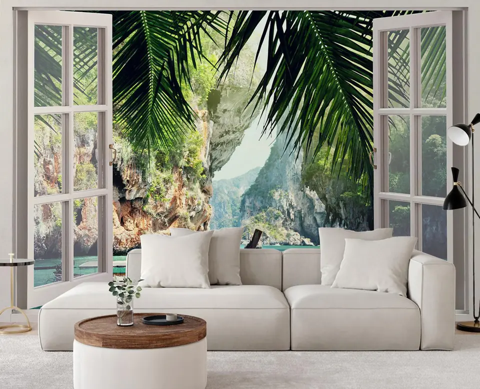 Fototapeta, Widok z okna tropikalna plaża palmy (Rozmiar 140x100)