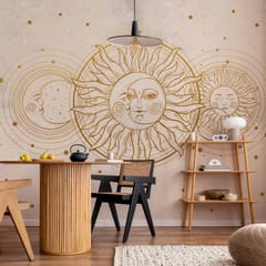 Fototapeta - Złote Słońce i Księżyc - artystyczna ilustracja w stylu retro rozmiar 400x280, wykończenie Wodoodporna