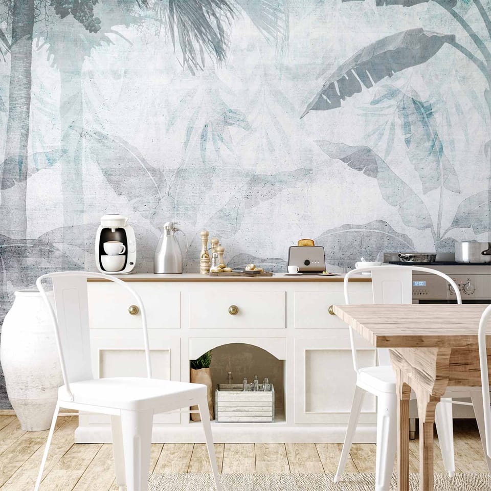 Fototapeta - Znikająca dżungla - pejzaż egzotycznej natury w niebieskich tonach rozmiar 350x256, wykończenie Wodoodporna