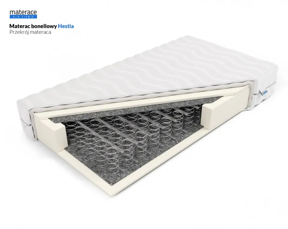 Materac Hestia – Materac bonellowy z 108 sprężynami/m² i pianką ComfortBase 2 cm z obu stron. Sprężystość progresywna i 10 lat gwarancji!