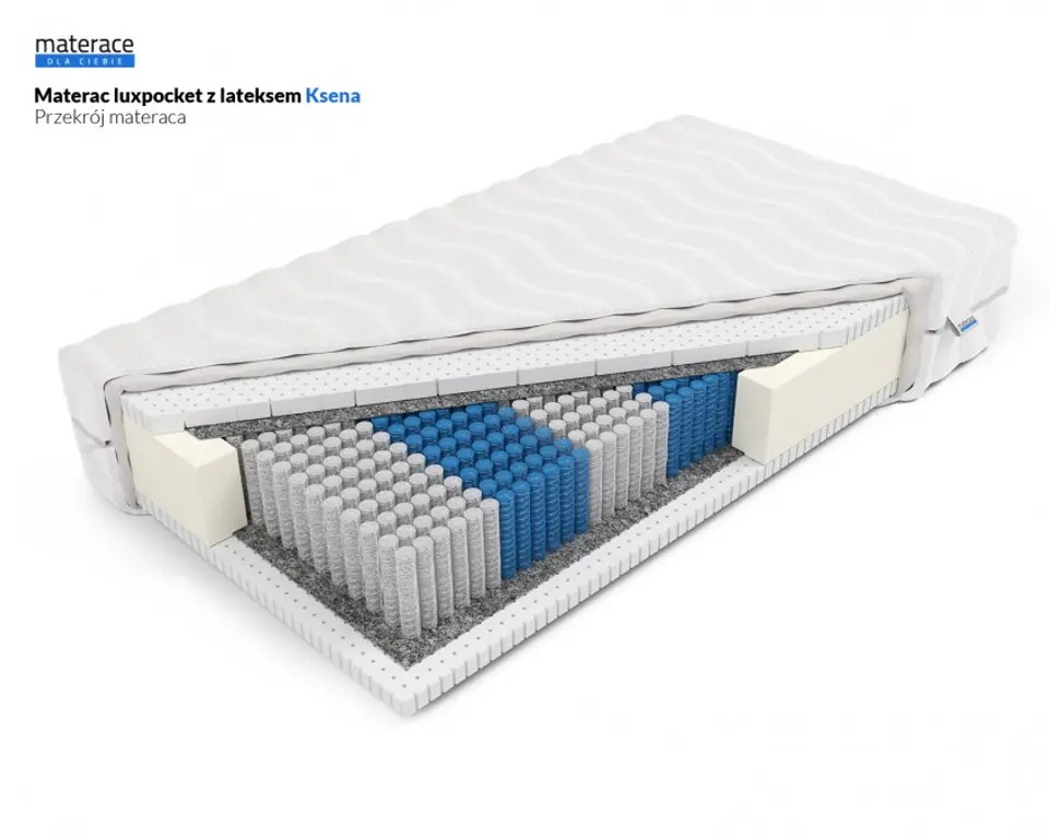 Materac Ksena – Materac ultra-premium z 1000 sprężynami/m² – niemal 2× więcej niż Multipocket! FlexyLateks 4 cm z obu stron dla sprężystego komfortu.
