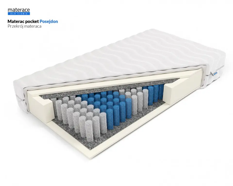 Materac Posejdon – Materac pocket z 272 sprężynami/m² i 7 strefami twardości. Średnio-twarda powierzchnia H2 idealna dla osób 60–80 kg.