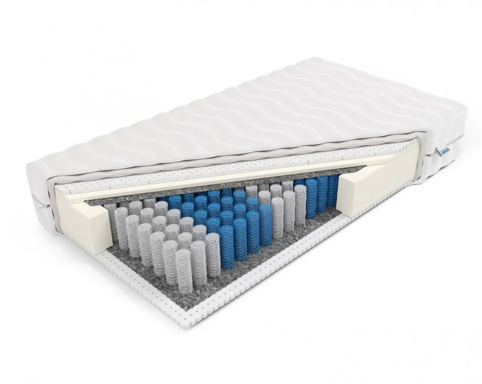 - Typ: Sprężynowy kieszeniowy (pocket) z lateksem obustronnym