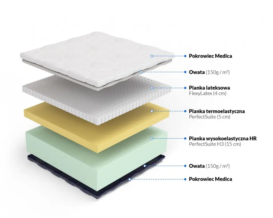 • Materiały: FlexyLateks 4cm + PerfectSuite VISCO 5cm + HR FreshElastic