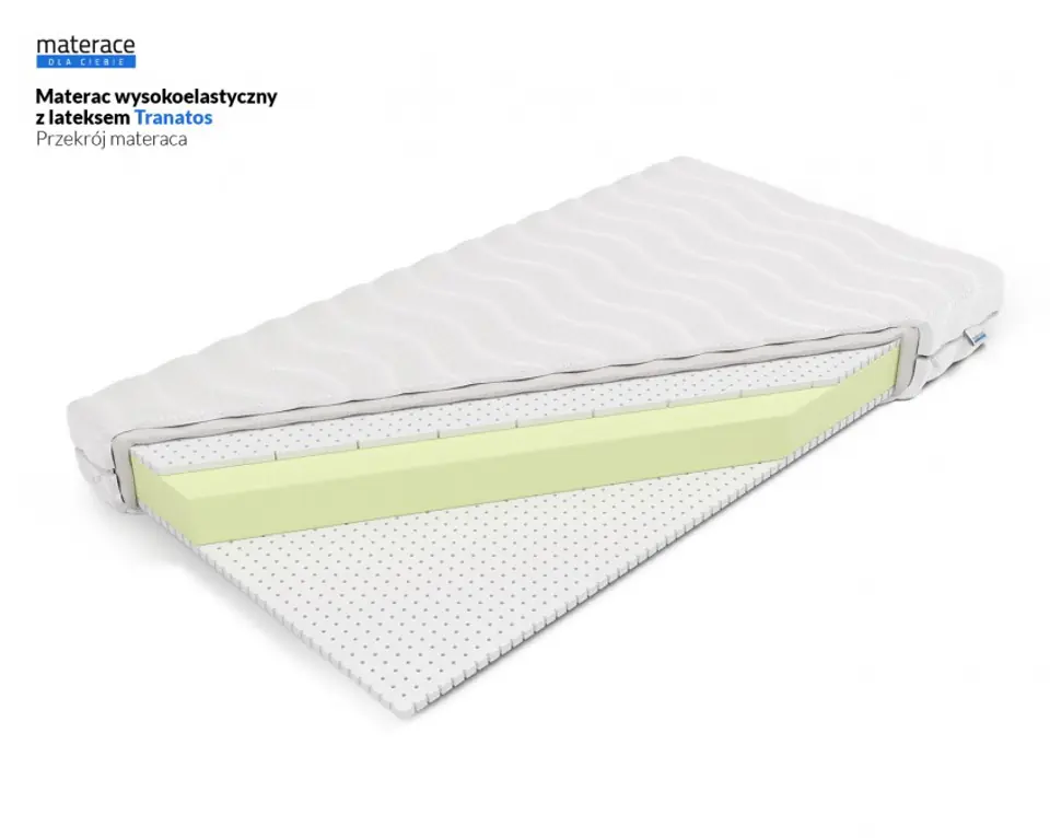 Materac Tanatos – Pianka wysokoelastyczna HR z lateksem FlexyLateks z obu stron. Średnio-twarda twardość H2. Doskonała wentylacja i elastyczność!