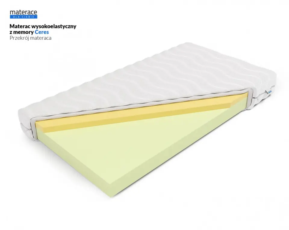 Materac Ceres – Dwie twardości w jednym! Strona H1 z pianką memory (miękka, otulająca) lub H2 z pianką HR (średnio-twarda). Idealne dla par o różnych preferencjach!
