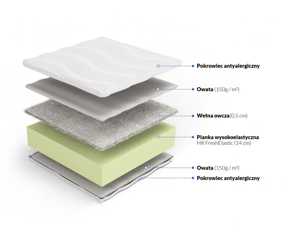 - Typ: Wysokoelastyczny HR z wełną (2 warstwy)