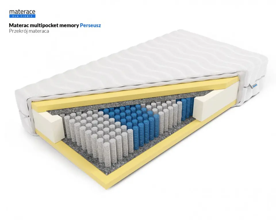 Materac Perseusz – Materac premium z 508 sprężynami/m² i pianką Memory 5 cm z obu stron. Najwyższa elastyczność punktowa dla osób 60-80 kg.