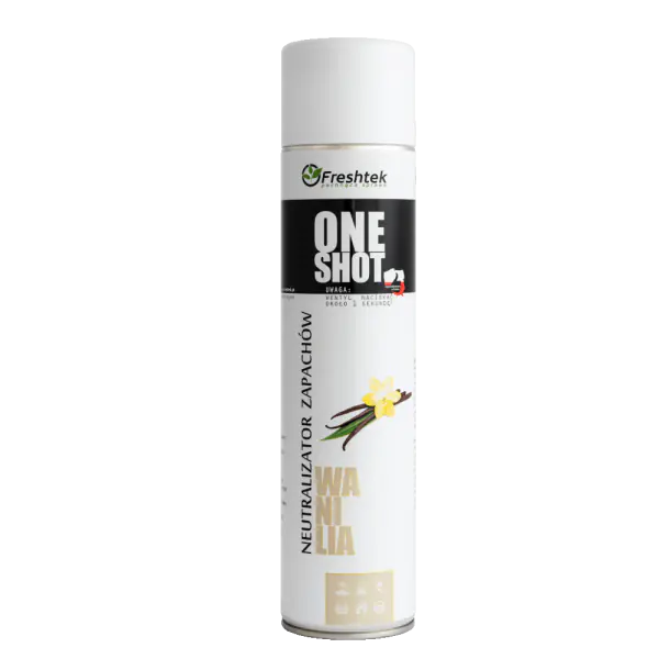 Freshtek One Shot Wanilia – środek o podwójnym działaniu – odświeżacza powietrza i neutralizatora nieprzyjemnych zapachów. Urzekający, słodki zapach wanilii, o kojących właściwościach.