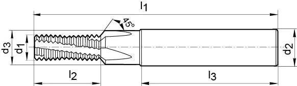 Zastosowanie: frezowanie gwintów i pogłębianie jednym narzędziem. Do metrycznych gwintów zwykłych (zarówno prawych jak i lewych) według DIN 13 do otworów przelotowych i nieprzelotowych.