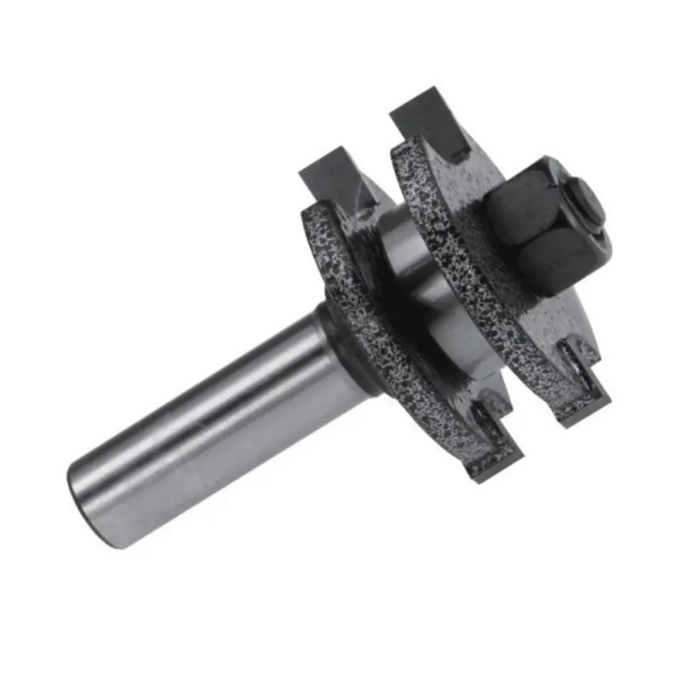 Zestaw frezów do drewna wykonany jest ze stali szybkotnącej HSS. Zestaw służy do wykonywania połączeń typu "T". Ostrze dwupłytkowe, wykonane z weglika spiekanego. Frez jest przeznaczony do obróbki drewna litego jak również sklejki, płyt wiórowych, płyt MDF.Frez został wyposażony w łożysko prowadzące. Główka freza pokryta farbą młotkową, która jest odporna na wysoką temperaturę.