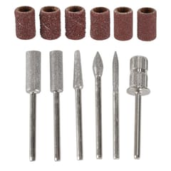 • 6 frezów o różnych kształtach: (stożek, walec, kula, igła, szpic, trzpień na kapturki) + 6 nakładek ściernych różnej grubości