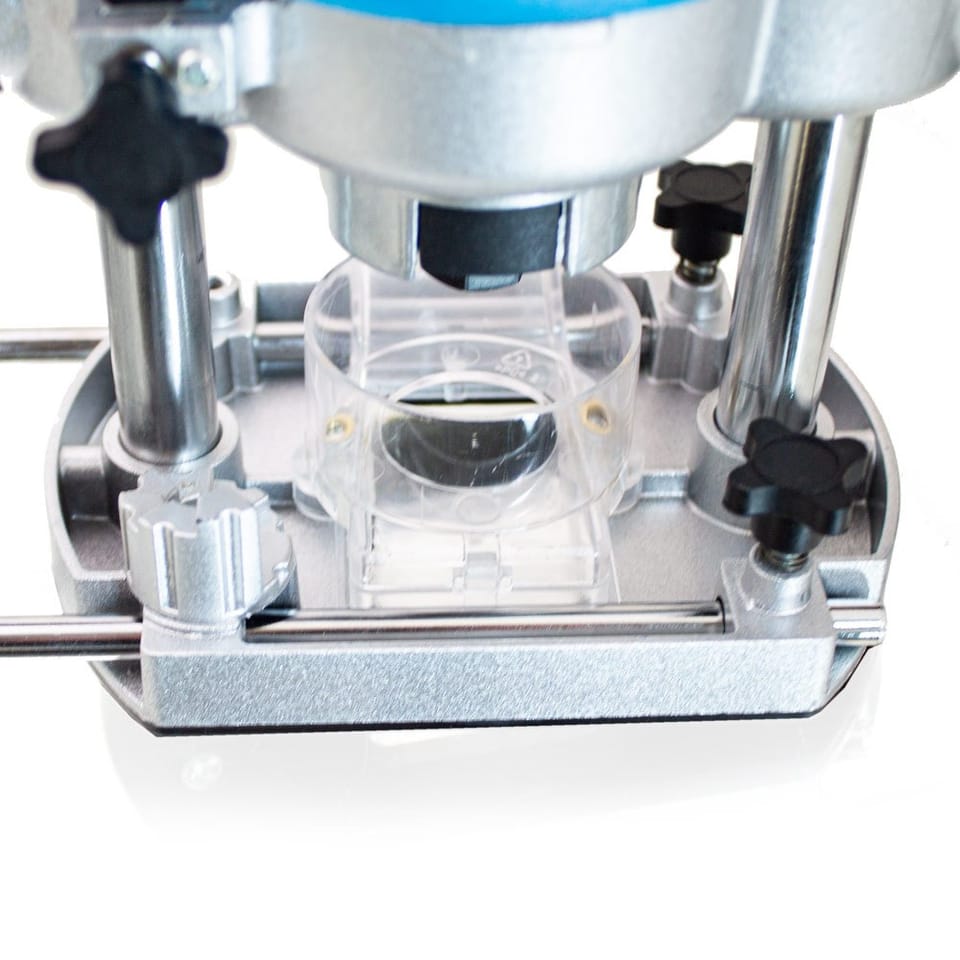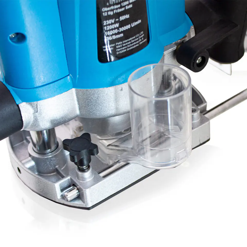 Dzięki mocy 1200W maszyna ta jest bardzo wydajna, a bezstopniowa prędkość frezowania zapewnia efektywną pracę. Bardzo dokładny regulator głębokości frezowania, prowadnica równoległa i przystawka ssąca to kolejne zalety tej frezarki.