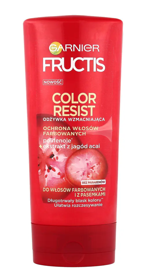 Odżywka Color Resist przeznaczona jest dla włosów farbowanych i z pasemkami.Zawiera ekstrakt z jagód acai i polifenole aby odżywić i chronić włosy farbowane.