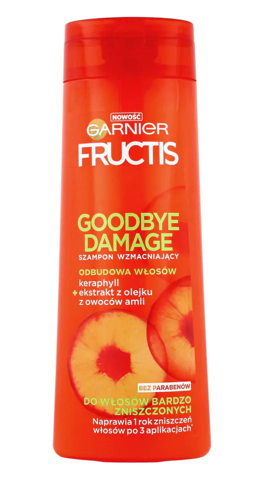 Szampon Goodbye Damage przeznaczony jest dla włosów bardzo zniszczonych.Zawiera ekstrakt z olejku z owoców amli oraz odbudowujący keraphyll,aby naprawić uszkodzenia włosów spowodowane działaniem czynników zewnętrznych.