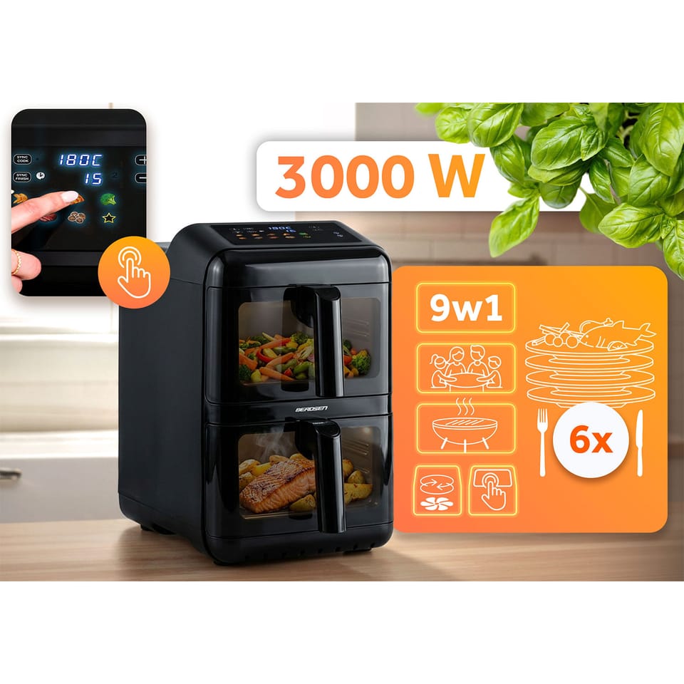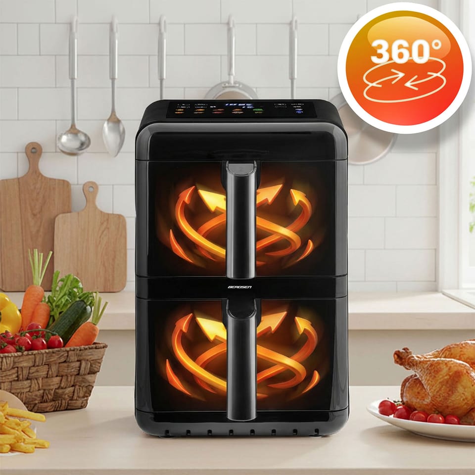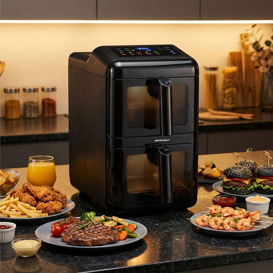 FRYTKOWNICA BEZTŁUSZCZOWA DWUKOMOROWA PIONOWA 11,6l AIR FRYER BERDSEN 3000W