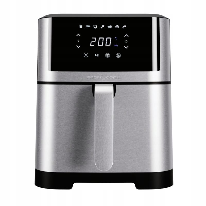 FRYTKOWNICA BEZTŁUSZCZOWA AIR FRYER 8L 1800W DUŻA MOCNA FRYTOWNICA AIRFRYER NAJWYŻSZEJ JAKOŚCIFRYTKOWNICA BEZTŁUSZCZOWARENOMOWANEJ FIRMY PROFICOOKMODEL: FR 1269Zaawansowana, beztłuszczowa frytkownica powietrzna o mocy 1800 W i pojemności koszyka aż 8 litrów. Frytkownica działa bez użycia tłuszczu, potrawy przygotowywane są przy pomocy cyrkulacji gorącego powietrza.Szeroki zakres temperatur od 80 do 200°C oraz 7 programów, umożliwiają sprawne przygotowanie potraw.ProfiCook PC-FR 1269 H to beztłuszczowa frytkownica powietrzna - połączenie pieca konwekcyjnego, grilla i frytkownicy. Umożliwia smażenie potraw bez użycia tłuszczu – przygotowywanie potraw odbywa się przy pomocy cyrkulacji gorącego powietrza. Dzięki temu potrawy są zdrowsze, mają mniej kalorii a poziom tłuszczu spada nawet o 95%.Urządzenie ma szerokie zastosowanie - dzięki niemu możemy piec, grillować, smażyć, podgrzewać, rozmrażać oraz opiekać. Przygotujemy w nim między innymi frytki, mięso, ryby, warzywa a nawet ciastka.Siedem zdefiniowanych programów, duża moc oraz pojemność kosza 8 litrów, pozwoli na szybkie przygotowanie posiłku dla całej rodziny.Technologia termoobiegu powoduje że przygotowywane potrawy są chrupiące na zewnątrz i odpowiednio miękkie w środku. Kolejną zaletą jest zdecydowanie większa sprawność w porównaniu do frytkownicy konwencjonalnej – potrawy przygotowywane są szybciej z uwagi na ekspresowe nagrzewanie się frytkownicy. Metoda ta gwarantuje wydzielanie zdecydowanie mniejszej ilości pary i nieprzyjemnych zapachów w porównaniu do tradycyjnych frytkownic. Oszczędzamy również duże ilości oleju które zużywa się w konwencjonalnej frytkownicy.Dotykowy panel daje możliwość wyboru jednego z ośmiu zdefiniowanych programów - zawierają one indywidualne ustawienia temperatury i czasu dla najpopularniejszych dań.Timer pozwala dobrać odpowiedni czas przygotowywania potraw. Aby rozpocząć, wystarczy ustawić czas oraz żądaną temperaturę na panelu dotykowym.Urządzenie zaprojektowane jest pod kątem wygodnego czyszczenia oraz bezpiecznego przygotowania – posiada demontowalny pojemnik, nienagrzewający się uchwyt oraz zabezpieczenie przeciw przegrzaniu i wyjęciu pojemnika.Najważniejsze cechy frytkownicy ProfiCook PC-FR 1269 H:Beztłuszczowa frytownica na gorące powietrzeFront obudowy wykonany ze stali szlachetnej7 zdefiniowanych programówFunkcja utrzymania ciepła i rozmrażaniaIndywidualne ustawienia czasu i temperaturyPojemność 8 litrówNiska emisja oparów i zapachówOszczędność czasu i energiiPanel dotykowyWyświetlacz LEDChłodny w dotyku uchwytPojemnik z powłoką non-stick ( nie przywiera)Bezstopniowo regulowany termostat (80-200 ° C)Automatyczny wyłącznikZabezpieczenie przed przegrzaniemMoc 1800 WOznaczenia CE - spełnia wszystkie restrykcyjne normy UEZasilanie: 220-240 V~, 50/60 HzUrządzenie pozwala na przygotowanie:FrytekKrewetek w tempurzeKotletów i burgerówRacuchówRybFaworkówMuffinekWarzyw...i wielu innychCzas pieczenia przykładowych potraw, temperatura:Pizza: 8 min, 200 (°C)Frytki: 20 min, 200 (°C)Stek: 25 min, 180 (°C)Krewetki: 20 min, 160 (°C)Ryba: 20 min, 180 (°C)Udko z kurczaka: 40 min, 160 (°C)Żeberka: 15 min, 180 (°C)Dlaczego warto kupić frytkownicę beztłuszczową ProfiCook PC-FR Sprawne działanieTechnologia termoobiegu powoduje że przygotowywane potrawy są chrupiące na zewnątrz i odpowiednio miękkie w środku. Kolejną zaletą jest zdecydowanie większa sprawność w porównaniu do frytkownicy konwencjonalnej – potrawy przygotowywane są szybciej z uwagi na ekspresowe nagrzewanie się frytkownicy.WielofunkcyjnośćDotykowy panel daje możliwość wyboru jednego z ośmiu zdefiniowanych programów zawierających indywidualne ustawienia temperatury i czasu dla najpopularniejszych dań.Timer pozwala dobrać odpowiedni czas przygotowywania potraw. Aby rozpocząć, wystarczy ustawić czas oraz żądaną temperaturę na panelu dotykowym.Zdrowsze przygotowanie potrawPrzygotowywanie potraw odbywa się przy pomocy cyrkulacji gorącego powietrza. Dzięki temu potrawy są zdrowsze, mają mniej kalorii a poziom tłuszczu spada nawet o 95%Idealna na prezentFrytownica posiada eleganckie opakowanie, dzięki czemu idealnie sprawdzi się, jako prezent!Wymiary frytkownicy:Wymiary: (ok. szer. x wys. x gł.) i wagaUrządzenie: 294 x 359 x 399 mm; 6.5 kgOpakowanie: 354 x 424 x 442 mm; 6.9 kg Produkt został odznaczony certyfikatem FOCUS - TEST DEUTSCHLANDS BESTECertyfikat TEST DEUTSCHLANDS BESTE został przyznany na podstawie badań przeprowadzonych przez „Germanys best household electronics”. W ramach testu porównane zostały produkty z ponad 20 000 marek z 274 segmentów rynkowych.Celem wyróżnienia „Focus” jest wskazywanie produktów cieszących się największym uznaniem konsumentów. Certyfikat przyznany jest na podstawie badań niemieckiego rynku i potwierdza wysoką jakość produktów a także świadczy o dużym zaufaniu konsumentów i renomie marki.slimtex