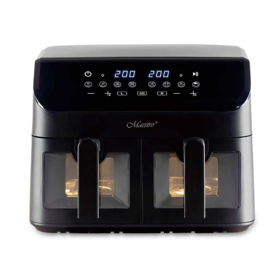 Odkryj nowy wymiar gotowania z frytkownicą beztłuszczową Maestro MR-758, która łączy innowacyjność z wygodą użytkowania. Dzięki technologii gorącego powietrza przygotujesz ulubione potrawy bez dodatku tłuszczu, zachowując ich smak i chrupkość. Urządzenie wyposażone jest w dwa kosze o pojemności 4,5 litra każdy, co pozwala przyrządzić więcej jedzenia jednocześnie. Sterowanie elektroniczne oraz intuicyjny panel dotykowy ułatwiają obsługę, a możliwość regulacji temperatury w zakresie od 80°C do 200°C oraz wybór jednego z ośmiu programów pozwala doskonale dostosować proces do każdej potrawy. Dodatkowe funkcje, takie jak timer do 30 minut i automatyczne wyłączanie, zwiększają komfort użytkowania. Bezpieczeństwo zapewnia ostrzeżenie o uziemieniu oraz konieczności ostrożności przy obsłudze. Wykończenie w eleganckiej czerni sprawia, że frytkownica doskonale prezentuje się w nowoczesnej kuchni, jednocześnie podnosząc standardy zdrowego gotowania.