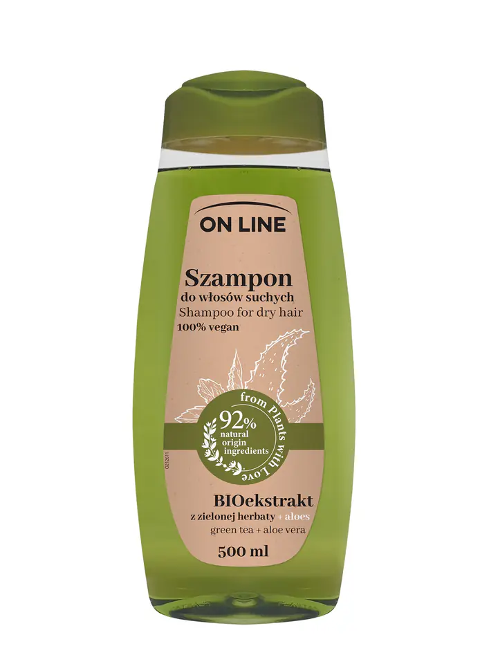 Szampon do włosów suchych, wymagających nawilżenia. 92% składników pochodzenia naturalnego. Wegańska formuła zawiera BIO ekstrakt z zielonej herbaty* oraz sok z aloesu i ekstrakt z jaśminu.