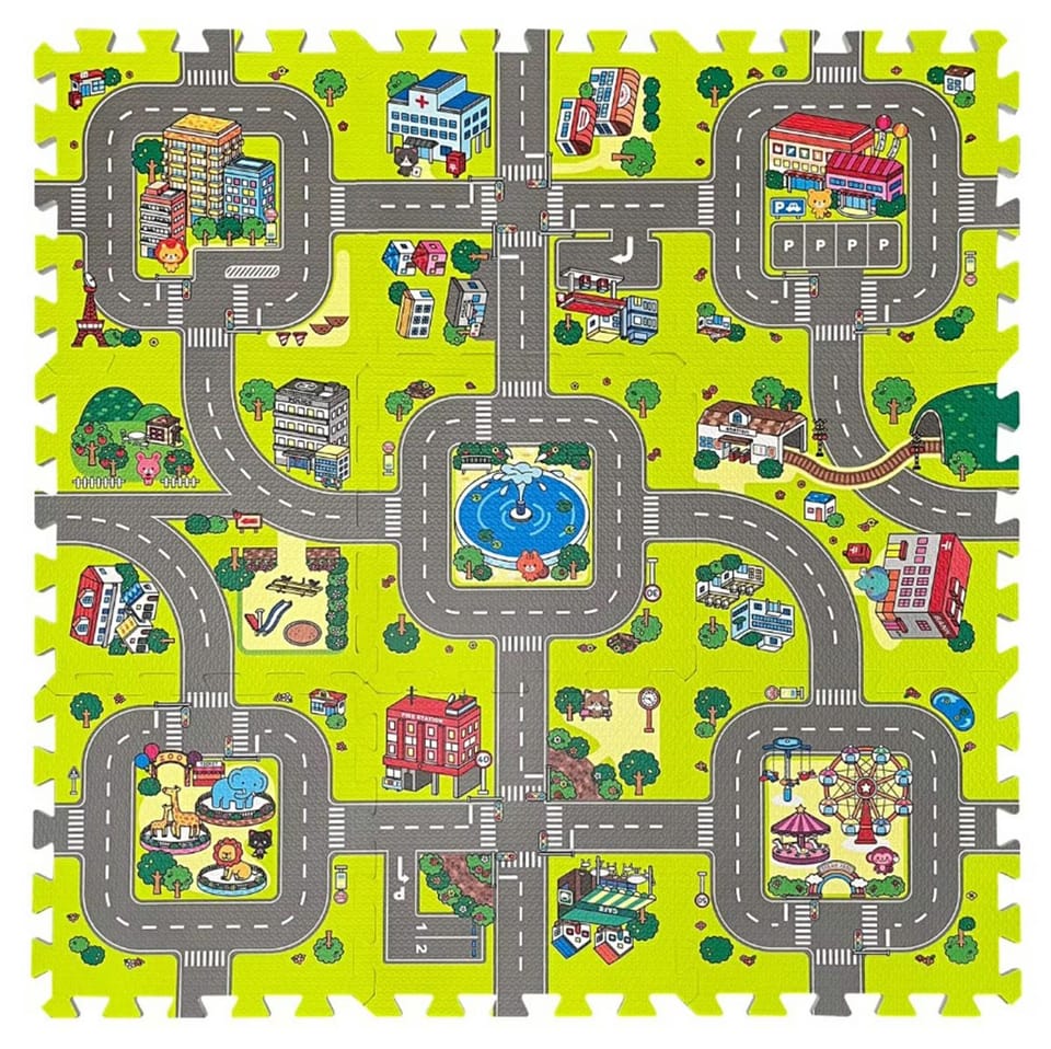 Komplet kolorowych puzzli dla dzieci, które przedstawiają miasto z ulicami. Klasyczny wzór i żywe kolory dostarczą dziecku wiele radości. Puzzle można układać w dowolnych konfiguracjach, a ich łączenie jest bardzo proste dzięki specjalnej, rowkowanej konstrukcji. To doskonała alternatywa dla klasycznego dywanu, wykonana z miękkiej i izolowanej pianki, która jest miła w dotyku i bardzo łatwa w czyszczeniu. Puzzle są antypoślizgowe i świetnie izolują przed zimnem z podłogi.