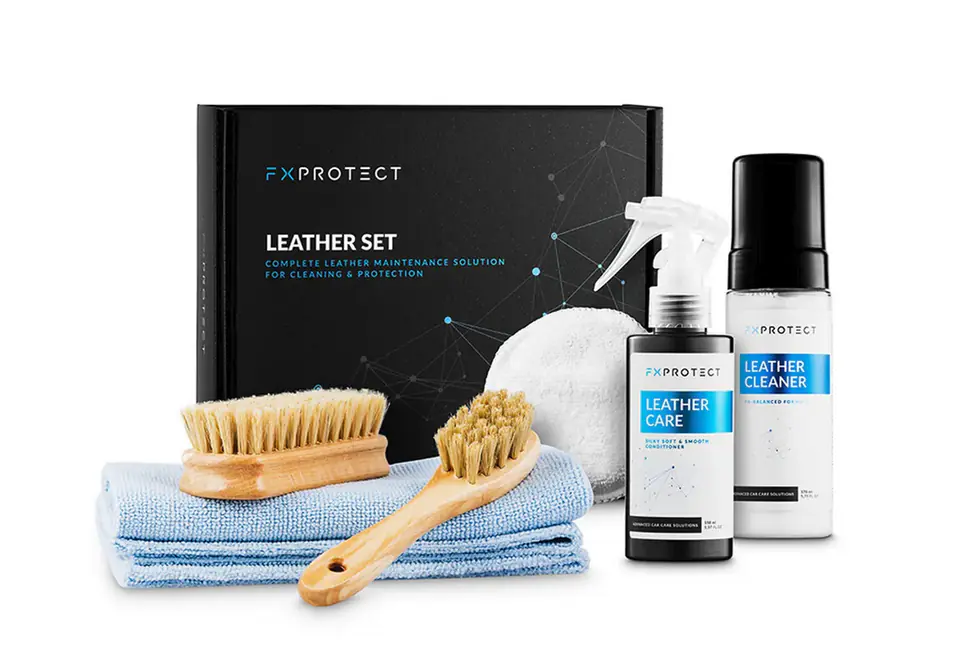 FX Protect Leather Set – to zestaw pielęgnacji tapicerki skórzanej, który zawiera niezbędne kosmetyki i akcesoria. Sprawią, że skóra będzie prezentowała się stylowo i pięknie przez wiele lat. Zachowa swoją miękkość i naturalne wykończenie.