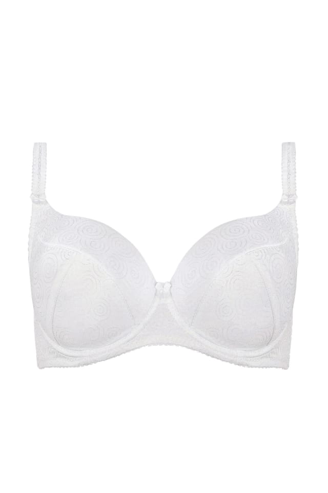 Klasyczny biustonosz usztywniany doskonale podtrzymuje biust. Wykonany z delikatnej dzianiny typu żakard ozdobionej subtelnym wzorem. Między miseczkami urokliwa kokardka.