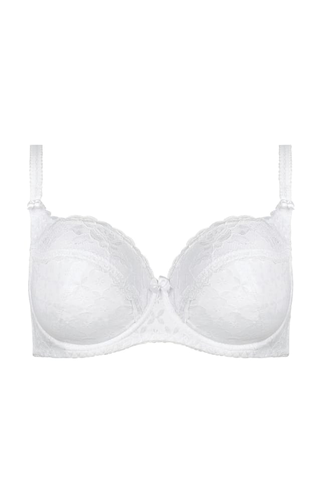 Subtelny biustonosz usztywniany doskonale podtrzymuje biust. Pokryty delikatną dzianiną typu żakard ozdobioną kwiatowym motywem oraz ponętną koronką. Między miseczkami urokliwa kokardka.