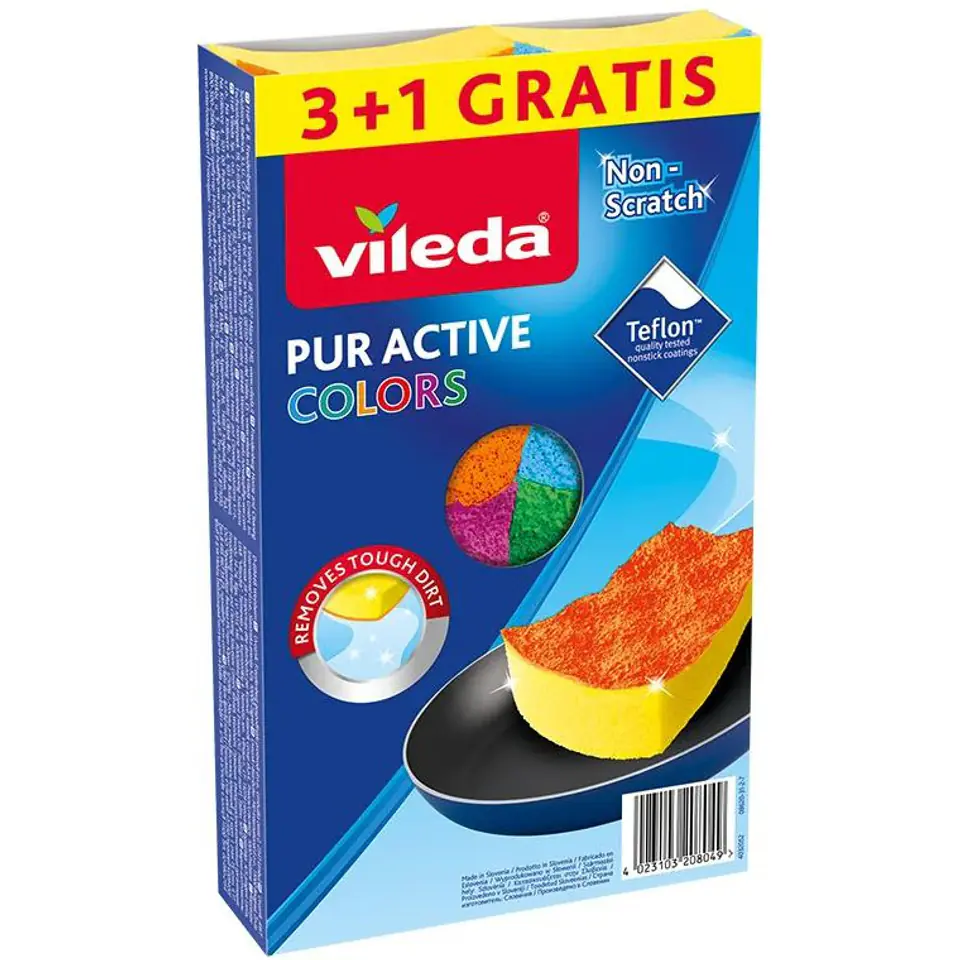 Gąbka VILEDA PUR ACTIVE Colours 7x15cm 3+1 szt) 4kolory 403205