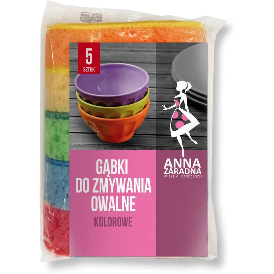 Gąbki do zmywania OWALNE kolorowe 5szt PG-3225