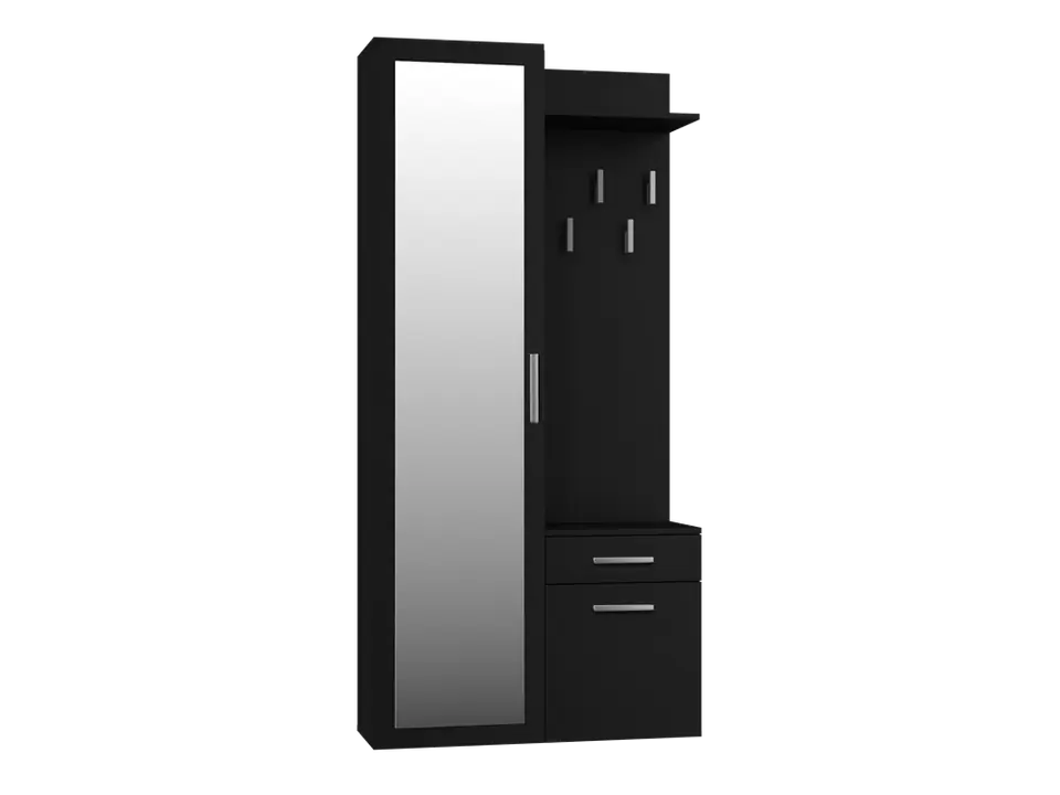 - Szafę z lustrem, szafkę oraz wieszak można zamontować blisko siebie, jak i zarówno rozsunąć.