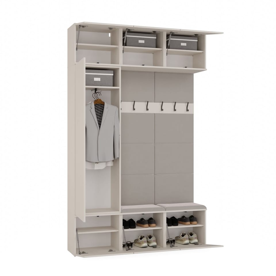 Dzięki przemyślanej, modułowej konstrukcji, każdy z elementów można swobodnie zestawiać, a całość tworzy elegancką i praktyczną przestrzeń wejściową – idealną zarówno do mieszkań, jak i domów jednorodzinnych.