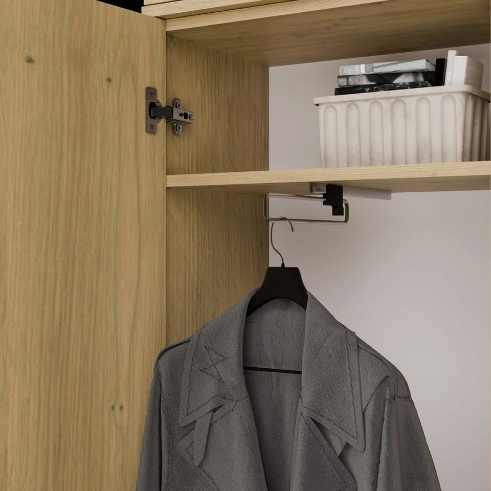 - Szerokość: 200 cm (3 szafy po 50 cm + wieszak 50 cm)