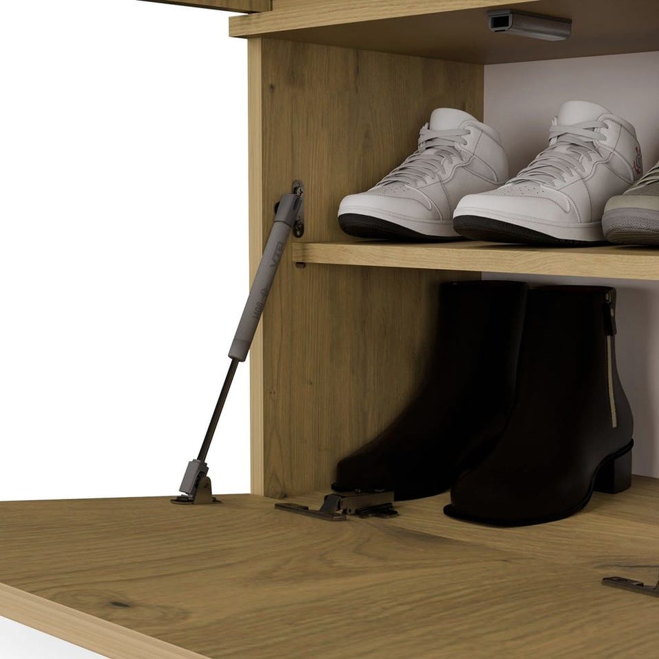 - Dolna szafka z wewnętrzną półką – do przechowywania butów lub większych akcesoriów