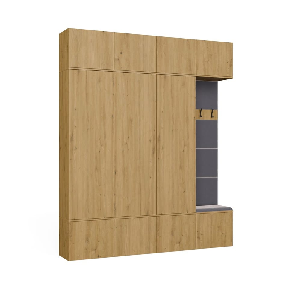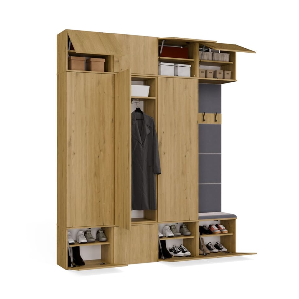 Dzięki przemyślanej, modułowej konstrukcji, każdy z elementów można swobodnie zestawiać, a całość tworzy elegancką i praktyczną przestrzeń wejściową – idealną zarówno do mieszkań, jak i domów jednorodzinnych.