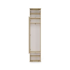 - Szafka górna z półką dzielącą przestrzeń na dwie strefy: Górna: 20,3 cm, Dolna: 16,8 cm – idealna na czapki, szaliki, torby lub pudełka