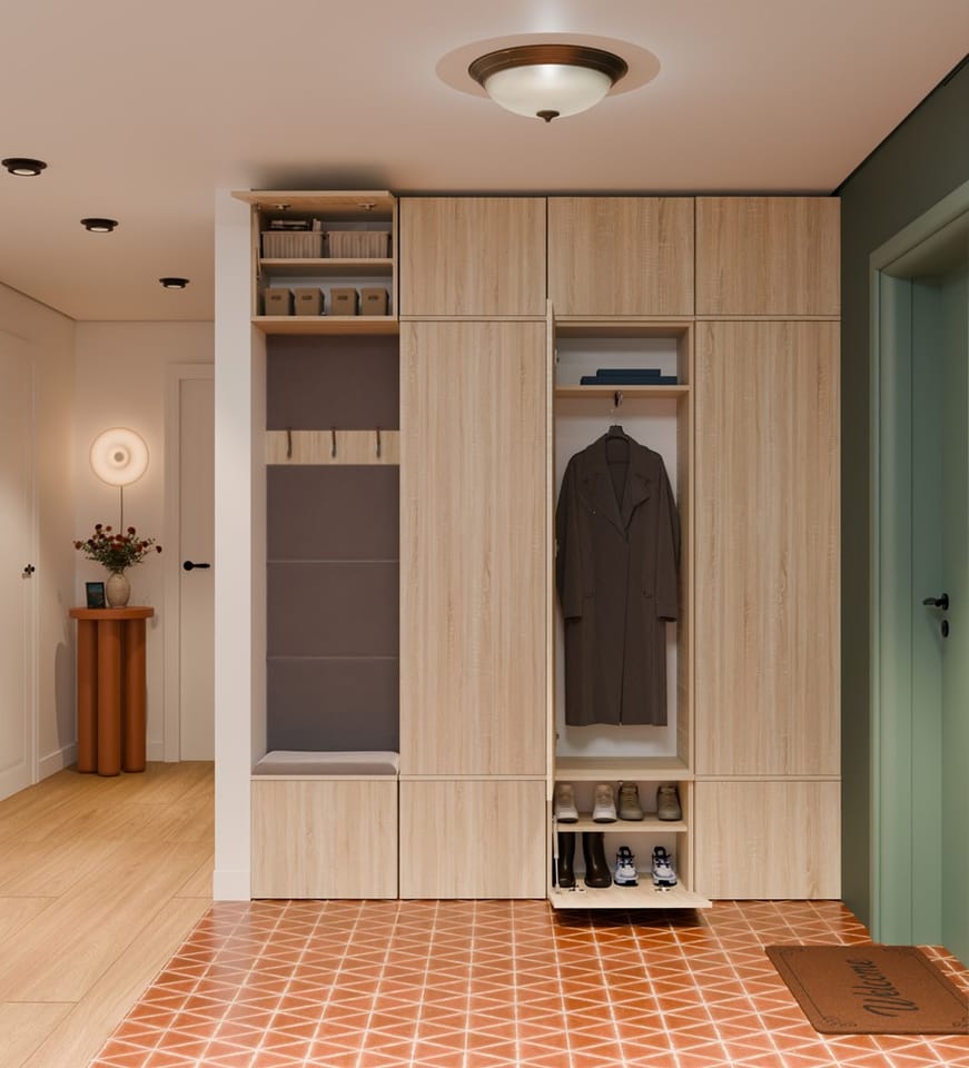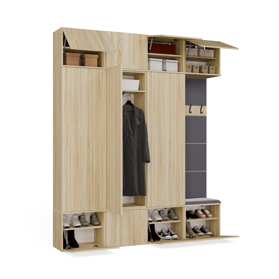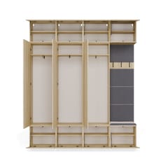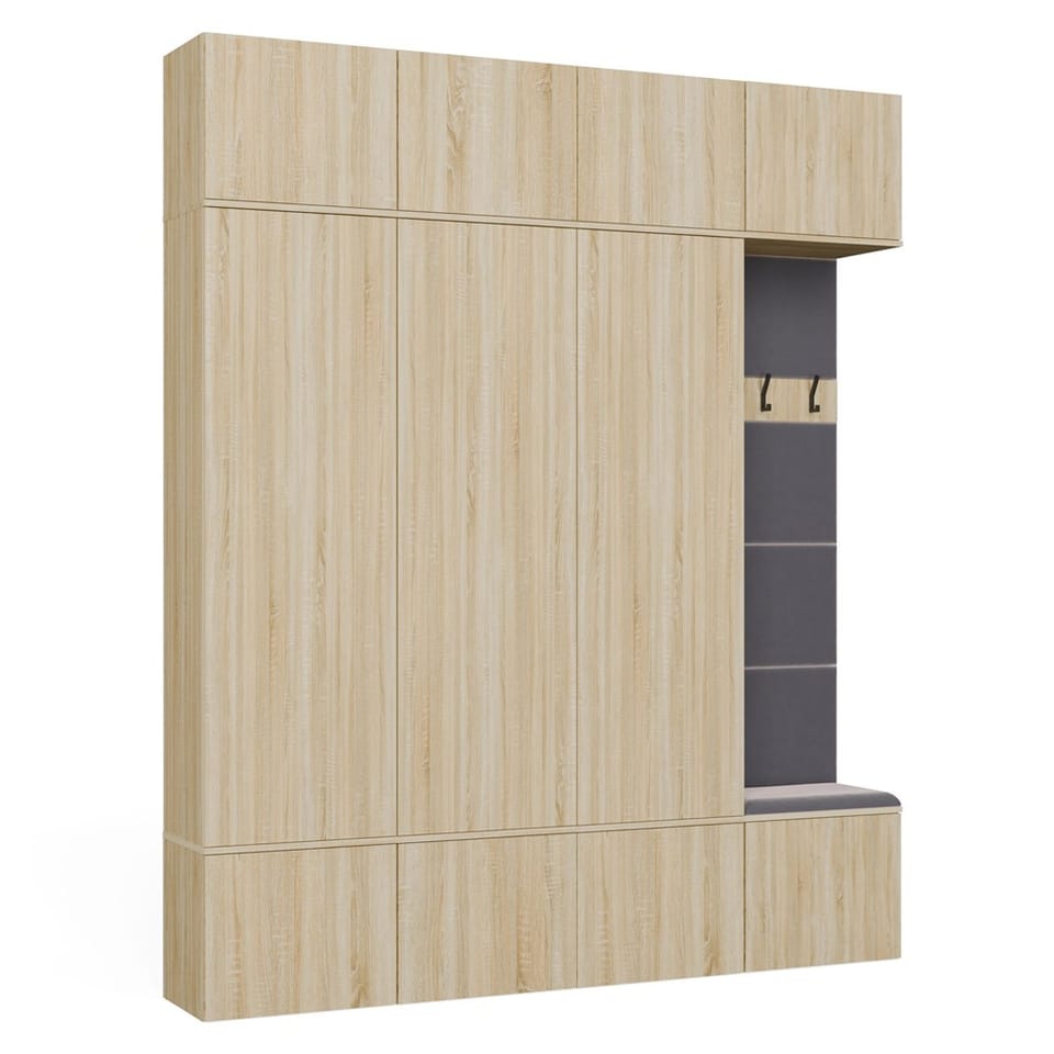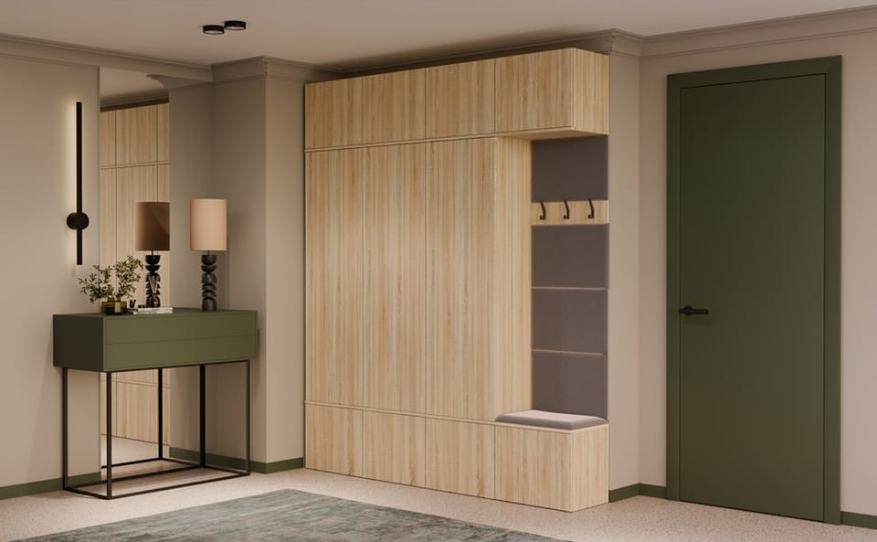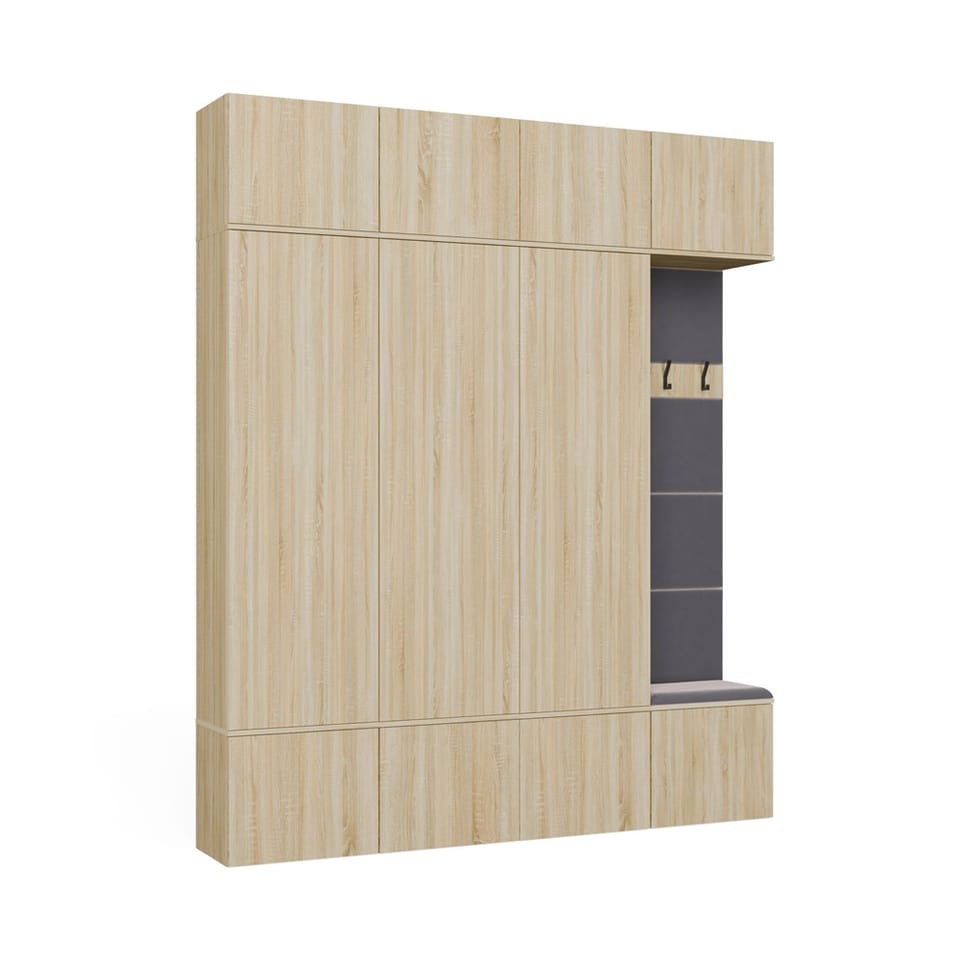 Dzięki przemyślanej, modułowej konstrukcji, każdy z elementów można swobodnie zestawiać, a całość tworzy elegancką i praktyczną przestrzeń wejściową – idealną zarówno do mieszkań, jak i domów jednorodzinnych.