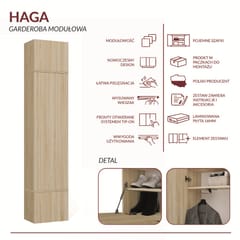 Seria mebli modułowych HAGA została zaprojektowana tak, by umożliwić dowolne zestawianie elementów - w łatwy sposób można rozbudować zestaw o dodatkowe moduły, np. wieszak, i stworzyć własny układ garderoby dostosowany do przestrzeni i potrzeb.