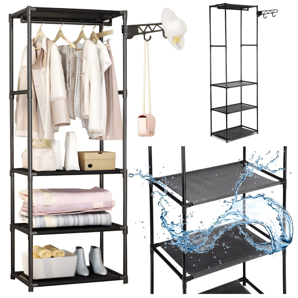 Garderoba szafa na ubrania czarna Milena⭐️ Wysoka garderoba na ubrania, kurtki⭐️ Drążek na wieszaki⭐️ 4 pojemne półki⭐️ Dodatkowy uchwyt na torebki, kapelusze✨Garderoba Milena✨Garderoba Milena to funkcjonalna i nowoczesna konstrukcja o minimalistycznym designie, idealnie sprawdzająca się w małych przestrzeniach. Posiada pionową, otwartą budowę, składającą się z kilku półek i miejsca na wieszaki na ubrania. Wykonana ze stali malowanej proszkowo, wyróżnia się lekkością, ale jednocześnie solidnością, dzięki czemu stabilnie utrzymuje odzież oraz inne akcesoria. Na górnej części znajduje się poprzeczny drążek na wieszaki, na którym można przechowywać kurtki, marynarki czy płaszcze. Niżej znajdują się 4 laminowane półki, które mogą pomieścić złożone ubrania, akcesoria oraz obuwie. Dodatkowym atutem jest przymocowany z boku uchwyt na kapelusze i torby, co zwiększa funkcjonalność szafy, umożliwiając przechowywanie drobniejszych elementów garderoby.✅ Drążek na wieszaki✅ 4 pojemne półki✅ Dodatkowy uchwyt na torebki i kapelusze✅ Wodoodporne półki✅ Stabilna konstrukcja✅ Uniwersalne zastosowanie☑️ Specyfikacja:Materiał stelażu: stal malowana proszkowoMateriał łączników: tworzywo sztuczneMateriał dodatkowego uchwytu: tworzywo sztucznePółki: laminowane, wodoodporneKolor: czarnyWaga: 1,32 kg☑️ Wymiary:Wysokość: 171 cmSzerokość: 55 cmGłębokość: 36 cmGrubość rurek: 1,6 cmOdległość między półkami: 31 cmOdległość najwyższej półki do końca szafy: 101 cmSzerokość drążka: 52 cmSzerokość uchwytu: 30 cm✅ Drążek na wieszakiSzafa posiada praktyczny drążek na wieszaki, który umożliwia wygodne przechowywanie ubrań, takich jak kurtki, płaszcze czy marynarki, zapewniając porządek i łatwy dostęp do odzieży.✅ 4 pojemne półkiGarderoba wyposażona jest w trzy pojemne półki, które doskonale sprawdzą się do przechowywania butów, akcesoriów oraz innych niezbędnych przedmiotów, pomagając w utrzymaniu porządku.✅ Dodatkowy uchwyt na torebki, kapeluszeSzafa posiada dodatkowy uchwyt boczny, idealny do wygodnego przechowywania torebek, kapeluszy i innych drobnych akcesoriów, co zwiększa jej funkcjonalność.✅ Laminowane wodoodporne półkiGarderoba Milena wyposażona jest w wodoodporne półki, które są odporne na wilgoć, dzięki czemu idealnie nadają się do przechowywania obuwia i akcesoriów nawet w wilgotnych pomieszczeniach.✅ Stabilna konstrukcjaSzafa wykonana jest ze stabilnej konstrukcji ze stali, co zapewnia jej wytrzymałość i bezpieczeństwo w codziennym użytkowaniu.✅ Uniwersalne zastosowanieSzafa ma uniwersalne zastosowanie, dzięki czemu doskonale sprawdzi się zarówno w sypialni, garderobie, jak i przedpokoju, oferując praktyczne rozwiązanie do przechowywania odzieży, butów i akcesoriów.❓Pytania i odpowiedzi (Q&A)❓➡️ Czy garderoba nadaje się do łazienki lub innych wilgotnych pomieszczeń?Tak, garderoba Milena ma wodoodporne półki, co sprawia, że doskonale sprawdzi się w wilgotnych pomieszczeniach, takich jak łazienka czy przedpokój.➡️ Czy garderoba jest stabilna?Tak, garderoba Milena ma solidny stelaż wykonany ze stli malowanej proszkowo, który zapewnia jej stabilność i wytrzymałość.➡️ Czy uchwyt jest w zestawie?Tak, garderoba Milena jest wyposażona w dodatkowe haczyki z tworzywa sztucznego, które ułatwiają wieszanie drobnych przedmiotów, takich jak torebki, szaliki czy parasole.Informacje dodatkowePrzedstawione kolory należy traktować poglądowo - mogą odbiegać od rzeczywistych ze względu na różne ustawienia monitorów oraz proces obróbki zdjęć. Rzeczywiste wymiary mogą się różnić od podanych wyżej. Tolerancja błędów może wynosić +/- 5%.Marka:GockowiakKod EAN:5902340331064Kolor:czarnyMateriał:stal malowana proszkowoSzerokość55 cmWysokość:171 cmGłębokość:36 cm