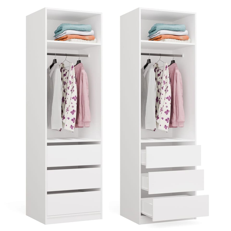 Seria mebli modułowych OPENO została zaprojektowana tak, by umożliwić dowolne zestawianie elementów - w łatwy sposób można rozbudować zestaw o kolejne moduły: z wieszakami, szufladami, półkami czy dodatkowe nadstawki. Dzięki modułowości, można stworzyć własny układ garderoby dostosowany do przestrzeni i potrzeb.