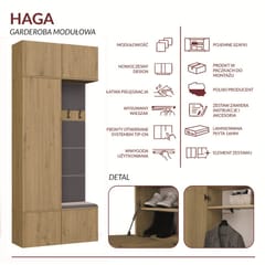 Seria mebli modułowych HAGA została zaprojektowana tak, by umożliwić dowolne zestawianie elementów - w łatwy sposób można rozbudować zestaw o dodatkowe moduły: Szafę lub wieszak i stworzyć własny układ garderoby dostosowany do przestrzeni i potrzeb.